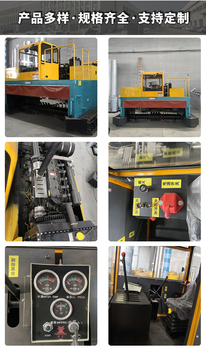 履帶式翻拋機先進的發酵工藝采取的是微生物好氧發酵,我廠生產的履帶翻堆機根據好氧發酵的原理設計,使發酵菌擁有了充分發揮其功能的空間。如果肥堆過高或用斗類機械,槽式發酵等,肥堆內就會形成厭氧狀態,使發酵菌的功能不能充分發揮,也就影響了成肥的質量和它的生產周期翻堆機是利用現代化技術將農業廢棄物,畜禽糞便和有機生活垃圾轉化為優質生物有機肥的理想設備。本產品適用于地面條堆發酵工廠化生產生物有機肥的模式,其機械設備具有投資少,能耗低,成肥快,產量大的明顯優勢。