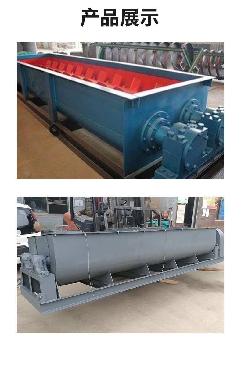 雙軸攪拌機屬于臥式連續混合設備,采用正反交替的螺旋槳葉使物料在ω型筒體內交替前進,具有攪拌能力較強,給料連續均勻的特點。適合松散物料的混合攪拌與加濕,也可用作粉體物料與一定比例的粘性較大添加劑的預處理設備。