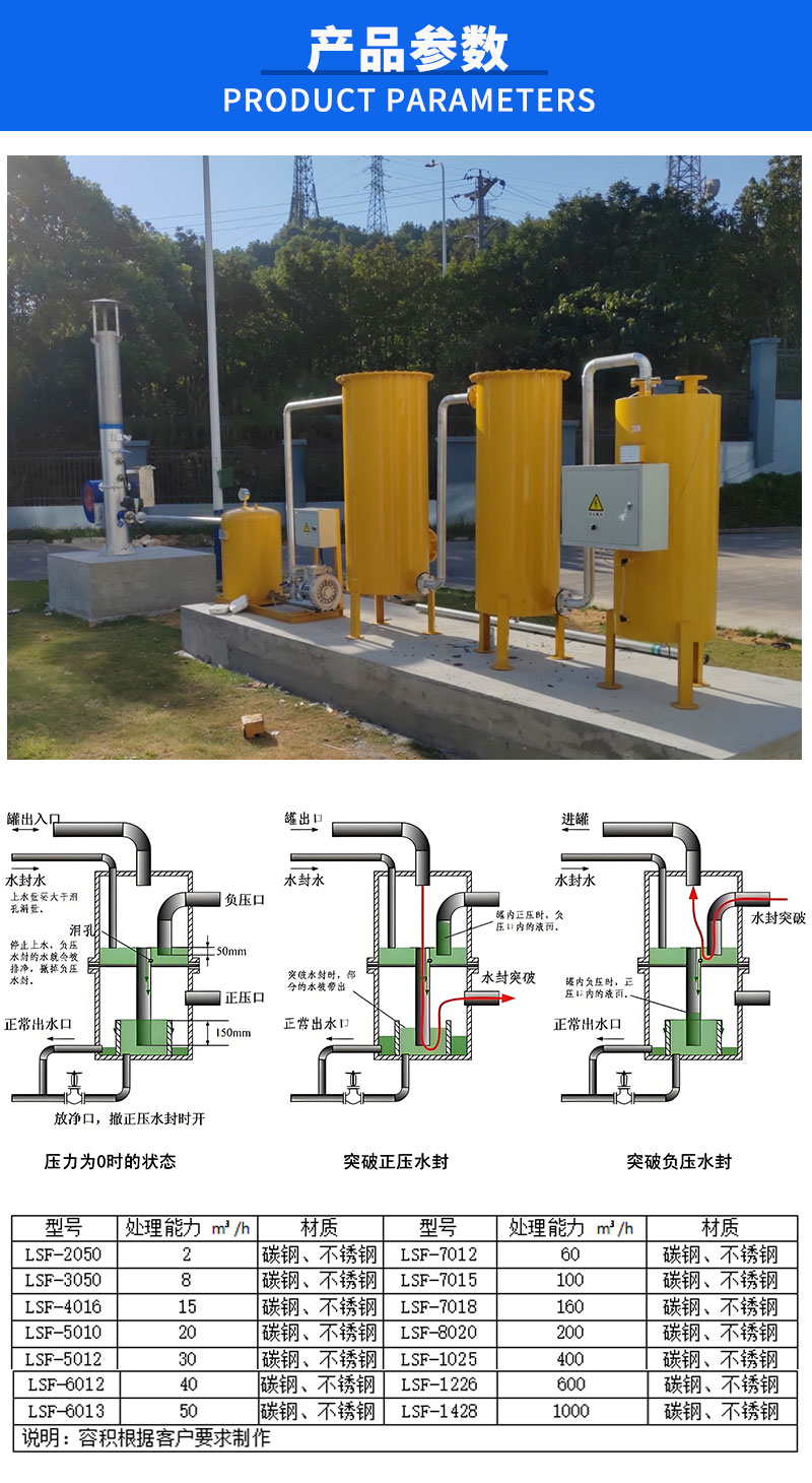 水封器的作用是防止回火回氣現象的發 生,易燃易爆氣體首先經過水封罐,一般入 口在水封罐的底部,水封器的上部空間接一 出口或再連一同樣的水封罐,或者直接與普 通阻火器相連接。液柱高度可以表示壓差。 控制器內壓力不變或者防止氣體泄漏,通常 多用于氣液分離,避免氣體泄漏。而液封在 化工生產中被廣泛應用: 為了防止控制器內氣體壓力不超過給定的數 值,常常使用安全液封裝置(或稱水封裝置)。 其目的是確保設備的安全,若氣體壓力超過 給定值,氣體則從液封裝置排出。 液封還可達到防止氣體泄漏的目的,而且它的密封效果極佳,甚至比閥門還要 嚴密。例如煤氣柜通常用水來封住,以防止煤氣泄漏。